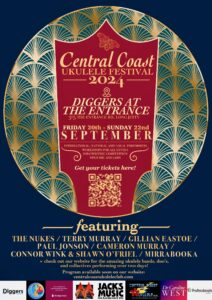 Thanks for being a part of our Ukastle Ukestra performancee at the 2024 Central Coast Ukulele Festival. The 2024 CUFF is being held on the weekend of 20-22 September at The Entrance Diggers Club. It is one month before our Newkulele Festival. As a consequence, we will be doing a similar Ukastle Ukestra performance repertoire at both festivals.